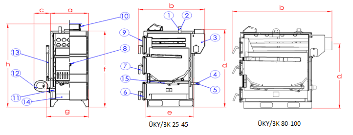 ÜNMAK ÜKY-3K Serisi kat kaloriferleri, odun ve kömür gibi katı yakıtları yakmaya uygun olup çeşitli kapasitelerde üretilmektedir. Özellikle kazanı söndürmeden; yastıklama yakmaya uygun olarak tasarlanmıştır. Üstün özellikleri sayesinde; konforlu ısınma sağlar ve kullanımı oldukça kolaydır.